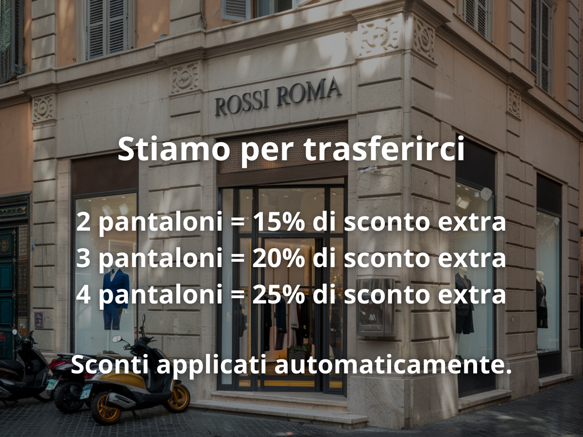 Dopo tanti anni nella nostra attuale sede, per noi si apre un nuovo capitolo. Per fare spazio al trasloco, abbiamo pensato a una promozione esclusiva che non puoi perdere.