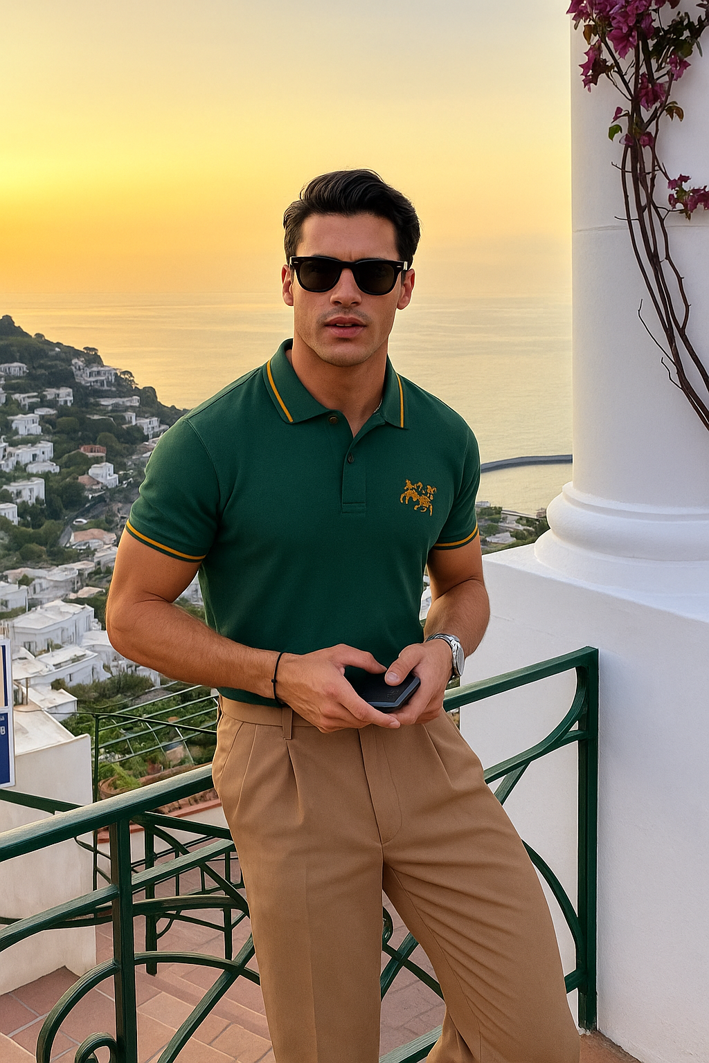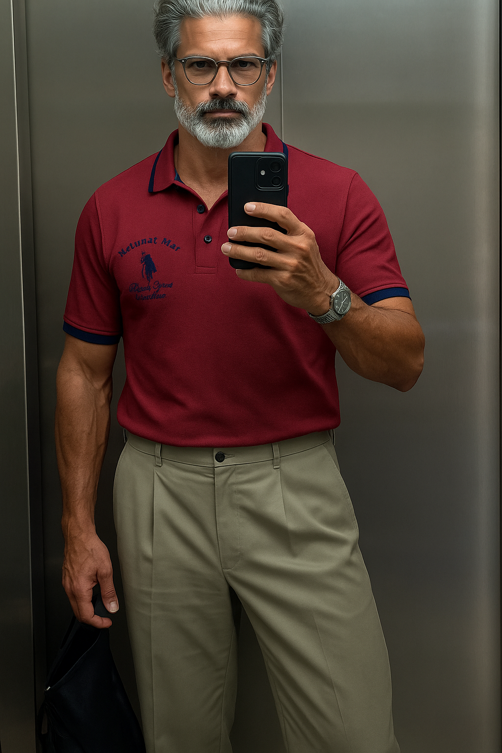 “Vivi la differenza di una polo che si muove con te: una vestibilità perfetta e un tessuto traspirante e resistente ti donano sicurezza in ogni riunione e in ogni incontro di famiglia.”